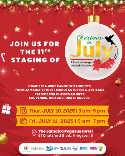 Christmas in July is being hosted by the Tourism Linkages Network, a division of the Tourism Enhancement Fund (TEF), in partnership with the Jamaica Business Development Corporation (JBDC), Jamaica Manufacturers and Exporters Association (JMEA), Jamaica Promotions Corporation (JAMPRO) and the Jamaica Hotel and Tourist Association (JHTA).