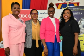 Minister of Agriculture, Fisheries and Mining, Hon. Floyd Green (second right), discusses characteristics of a local banana variety with (from left) Deputy Dean, Faculty of Science and Technology, University of the West Indies (UWI), Mona, Professor Tannecia Stephenson; General Manager of the Banana Board, Janet Ferguson-Conie; Chairperson of the Musa Technical Working Group, Caribbean Plant Health (CPHD) Directors Forum, Nelson...