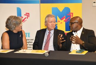 Minister of Labour and Social Security, Hon. Pearnel Charles Jr. (right), speaks with Chairperson of the Council of Voluntary Social Services (CVSS), Kim Mair; and President of CVSS, Gary Hendrickson. Occasion was the launch of the CVSS’ Advocate, Innovate and Mobilise (AIM) initiative on October 12 at the AC Hotel by Marriott in Kingston. AIM aims to strengthen the capacity...