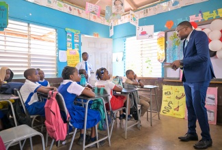 Minister of Education and Youth, Hon. Fayval Williams, has the attention of students from the Danny Williams School for the Deaf during Read Across Jamaica Day activities at the institution in Kingston. The day was observed on May 7.