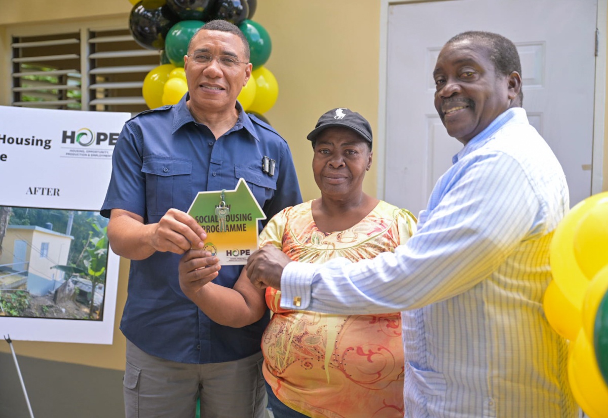 Prime Minister, Dr. the Most Hon Andrew Holness (centre) presents a gift to a ward of the State during a Christmas treat on Sunday (Dec. 15) on the Jamaica House back lawns in Kingston. Sharing the moment are Burger King’s Assistant Brand Manager Rashai Graham (left) and Senior Brand Manager, Orion Aitken.