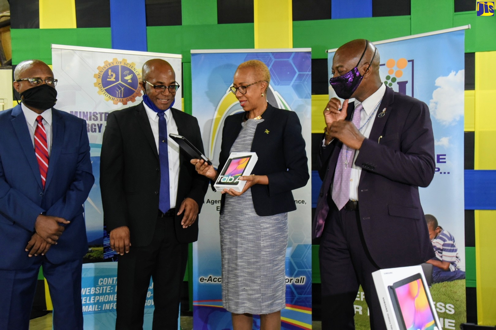 The distribution of 65,000 tablet computers to teachers and students will be completed in this fiscal year, says Minister of Science, Energy and Technology, Hon. Fayval Williams. This was noted by Mrs. Williams during the official ceremony for the distribution of 32 tablet computers to educators at the Hope Valley Experimental School, located at 2-4 University Road, Kingston 7, on...