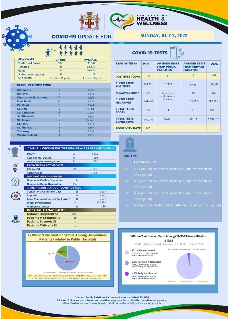 COVID-19 Clinical Management Summary for Sunday, July 3, 2022 By: Ministry of Health and Wellness, July 4, 2022 Listen Coronavirus Share Photo: Stock ImageStock Image The Full Story