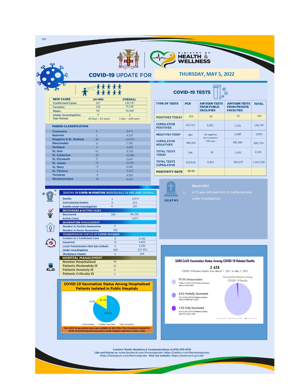 COVID-19 Clinical Management Summary for Thursday, May 5, 2022 By: Ministry of Health and Wellness, May 6, 2022 Listen Coronavirus Share Photo: Stock ImageStock Image The Full Story