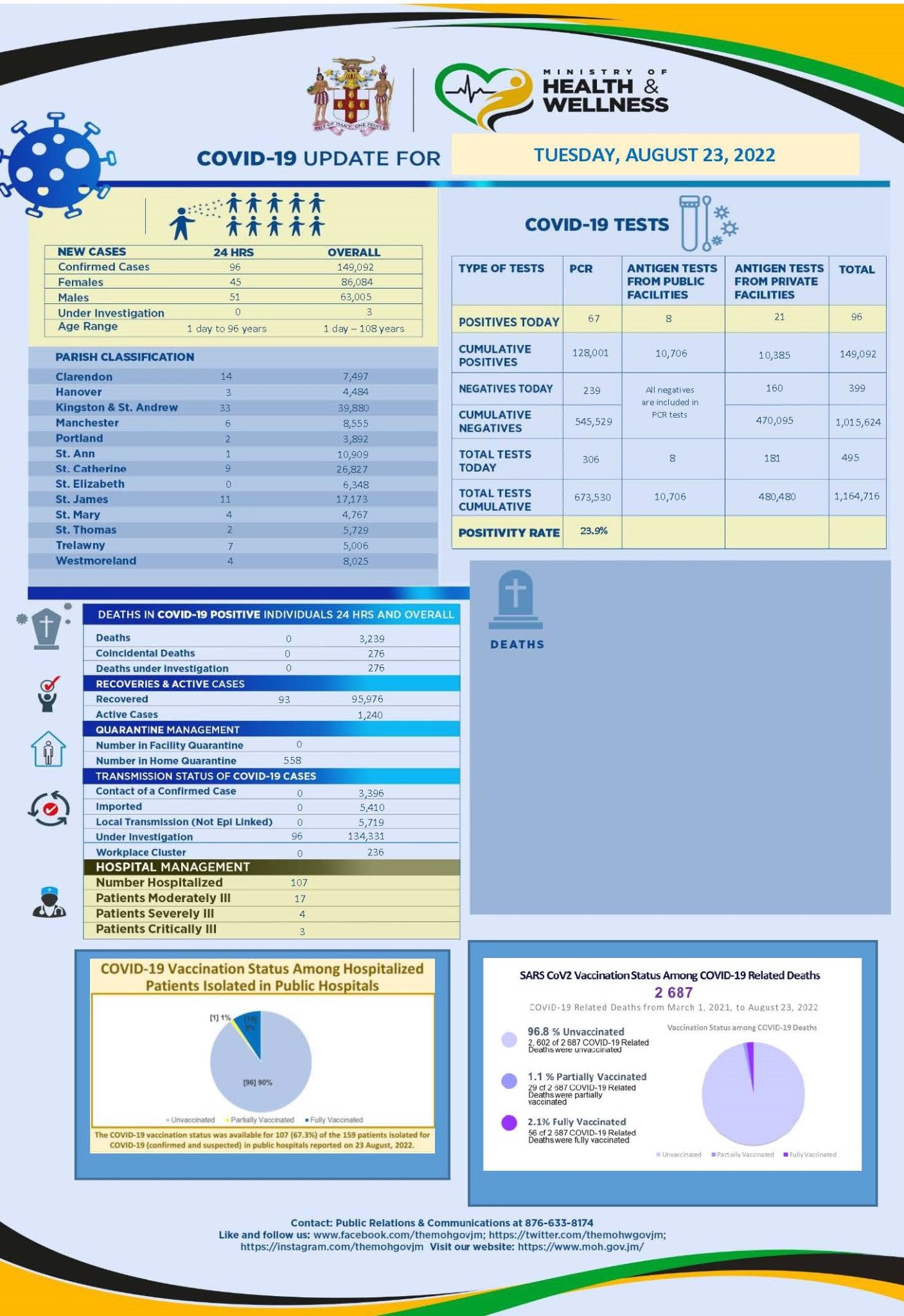 COVID-19 Clinical Management Summary for Tuesday August 23, 2022 By: Ministry of Health and Wellness, August 24, 2022 Listen Coronavirus Share Photo: Stock ImageStock Image The Full Story
