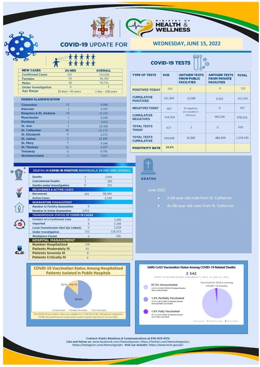 COVID-19 Clinical Management Summary for Wednesday, June 15, 2022 By: Ministry of Health and Wellness, June 16, 2022 Listen Coronavirus Share Photo: Stock ImageStock Image The Full Story