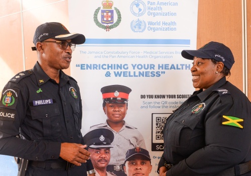 Commander of the Area Five Police Division, Acting Assistant Commissioner of Police (ACP), Christopher Phillips (left), who is former Head of the St. Catherine North Police Division, shares that the Detective Inspector is one of the “very reliable, innovative thinkers that you could have in your community, initiating community activities that target at-risk youth, focusing on areas having to do with mental health,” he tells JIS News.