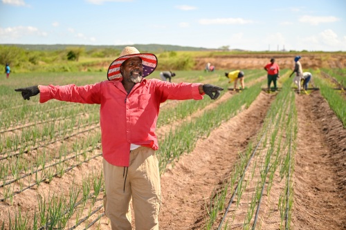 He shares that he had planted a plot of scallion seedlings a week before the hurricane made landfall in Jamaica, and the crops suffered no damage.