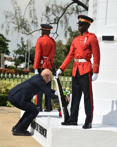 Governor-General, His Excellency the Most Hon. Sir Patrick Allen, pays tribute to service members who lost their lives in the two great wars, during the Remembrance Day ceremony at National Heroes Park in Kingston on November 11.
