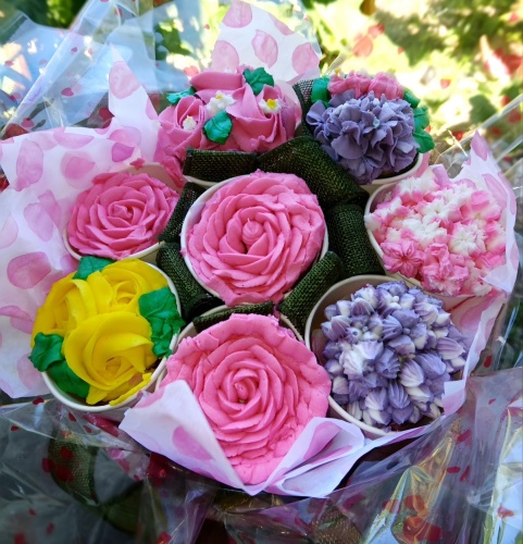 A floral cupcake bouquet by SoSo Sweetz N Treatz.