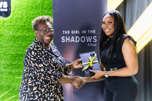 Author and former Youth Ambassador for Jamaica, Tameka Hill (right), presents a copy of her book, titled ‘The Girl In the Shadows’, to Director of Public Prosecutions (DPP), Paula Llewellyn, at the recent launch, held at the National Housing Trust (NHT) Corporate Offices in New Kingston.