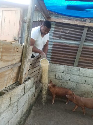 The young farmer, who also works in transportation, began farming in 2020. He currently raises livestock, including goats and pigs. He also has layers, and farms pineapple, banana and plantain.