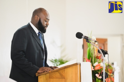 Minister of State in the Ministry of Agriculture, Fisheries and Mining, Hon. Franklin Witter, delivers remarks at the church service to launch National Minerals Week held on Sunday (May 6) at the Wesley Mandeville Methodist Church in Manchester.