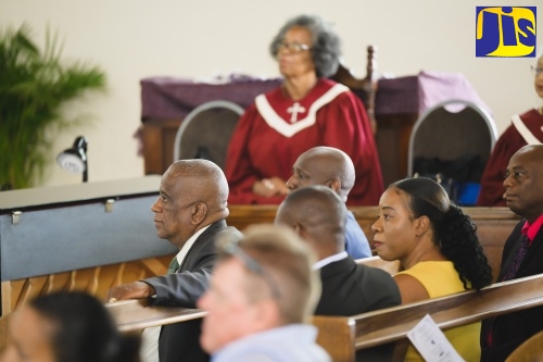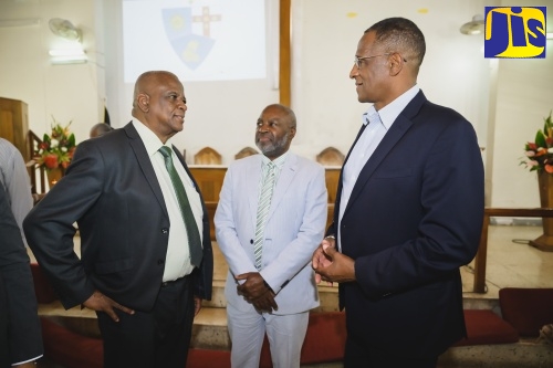 Inspector of Mines in the Mines and Geology Division of the Ministry of Agriculture, Fisheries and Mining, Giovonni Brown, reads from the bible at the National Minerals Week church service held on Sunday (May 5), at the Wesley Mandeville Methodist Church in Manchester.Minister of State in the Ministry of Agriculture, Fisheries and Mining, Hon. Franklin Witter (left), speaks with President of the Mining and Quarry Association of Jamaica, Samuel Millington (right), at this morning’s (May 5) National Minerals Week church service held at the Wesley Mandeville Methodist Church in Manchester. At centre is Permanent Secretary in the Ministry, Dermon Spence.Minister of State in the Ministry of Agriculture, Fisheries and Mining, Hon. Franklin Witter (front), attends the church service to launch National Minerals Week held on Sunday (May 6) at the Wesley Mandeville Methodist Church in Manchester.