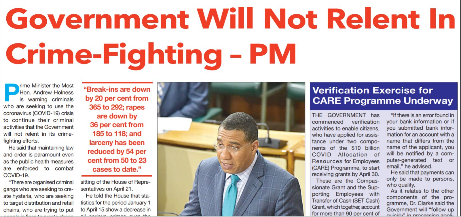 Government Will Not Relent in Crime-Fighting- PM
