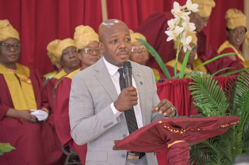 Minister of Labour and Social Security, Hon. Pearnel Charles Jr., delivers remarks during the commemorative thanksgiving service