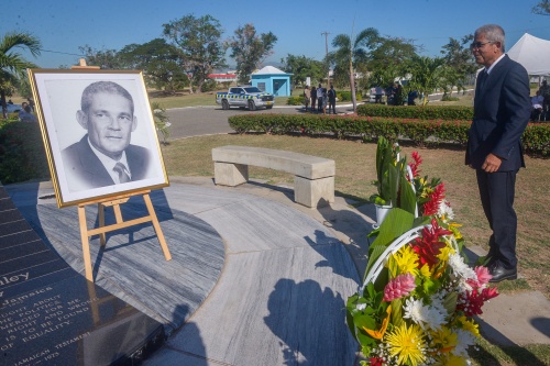 Floral tributes were laid at the shrine of the late former Prime Minister, Most Hon. Michael Manley, to mark the 101st anniversary of his birth, at National Heroes Park in Kingston on Wednesday (December 10).