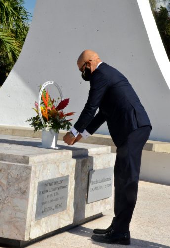 Governor-General, His Excellency the Most Hon. Sir Patrick Allen, places a wreath at the shrine of National Hero, the Rt. Excellent Sir Alexander Bustamante. Occasion was a floral tribute to mark the 137th anniversary of Bustmante’s birth, at National Heroes Park in Kingston on Wednesday, February 24.