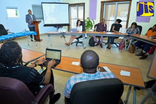 Minister of Agriculture, Fisheries and Mining, Hon. Floyd Green, addresses a seminar on ‘Navigating Challenges: Enhancing Small Producers in Cultivating Cash Crops’, at the University of the West Indies (UWI) Mona Campus in St. Andrew on April 18. The session was staged by the Department of Sociology, Psychology and Social Work.