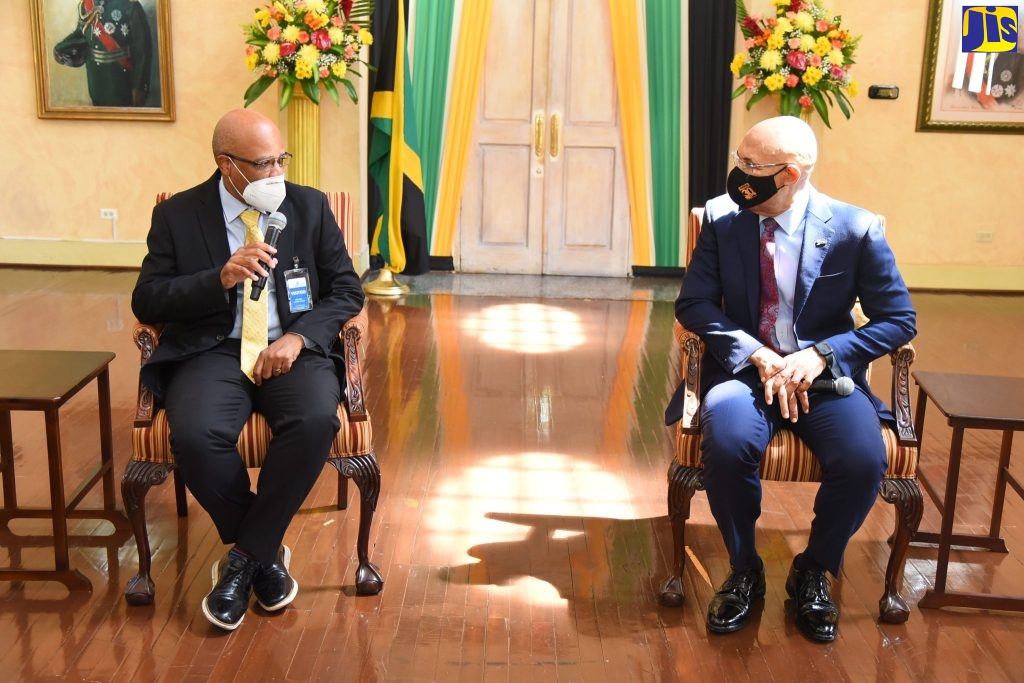 Governor General, His Excellency the Most Hon. Sir Patrick Allen ( right), listens to comments from Deputy Chair, JPS Foundation, Ramsay McDonald, during a courtesy call at King’s House on Thursday (September 8).