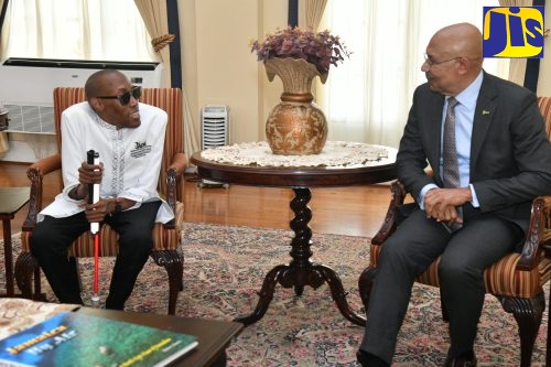 Governor-General, His Excellency the Most Hon. Sir Patrick Allen, converses with Founder and Executive Director, Jamaican Association for Debating and Empowerment (JADE), Germaine Barrett, when members of the association visited King’s House on September 19.