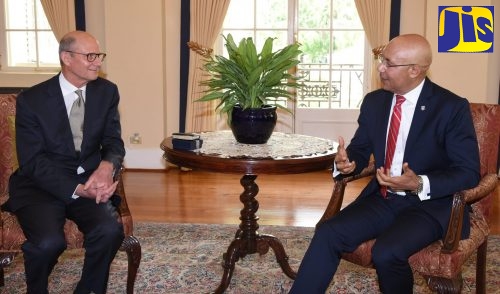 Governor-General, His Excellency the Most Hon. Sir Patrick Allen (right), converses with President of the Seventh-day Adventist World Church, Pastor Ted Wilson, during a courtesy call at King’s House on Tuesday (February 5). Mr. Wilson is in Jamaica for the Global Leadership Summit 2019 being held from February 1 to 11 in Montego Bay, St. James. The summit is an international leadership conference put on by the Global Leadership Network.
