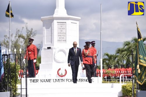 Governor-General, His Excellency the Most Hon. Sir Patrick Allen (left), headed a list of dignitaries laying wreaths at the Cenotaph at National Heroes Park, today (November 10) during the Remembrance Day ceremony. Traditionally, Remembrance Day, also known as Armistice Day or Poppy Day is observed on the second Sunday in November, and its primary purpose is to pay homage to those who gave their service and, ultimately, their lives in the two great wars.