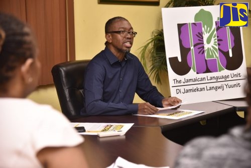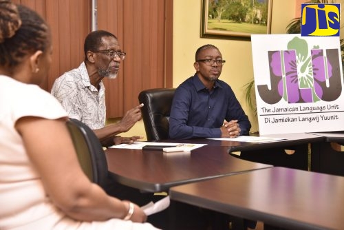 Senior Lecturer in the Department of Language, Linguistics and Philosophy, The University of the West Indies (UWI), Mona, Joseph Farquharson, speaks about the benefits of making Patois an official language during the launch of a public petition on the Office of the Prime Minister’s online petition website to grant official status to the Jamaican language alongside English language. The launch took place on Thursday (Nov. 7) at the Faculty of Humanities and Education Conference Room at The UWI, Mona.Professor Emeritus, Hubert Devonish (left), addresses a function to launch a public petition on the Office of the Prime Minister’s online petition website for the granting of official status to the Jamaican language alongside the English language. The launch took place on Thursday (Nov. 7) at the Faculty of Humanities and Education Conference Room, The University of the West Indies (UWI), Mona campus. Seated next to Professor Devonish is Senior Lecturer in the Department of Language, Linguistics and Philosophy, Joseph Farquharson.