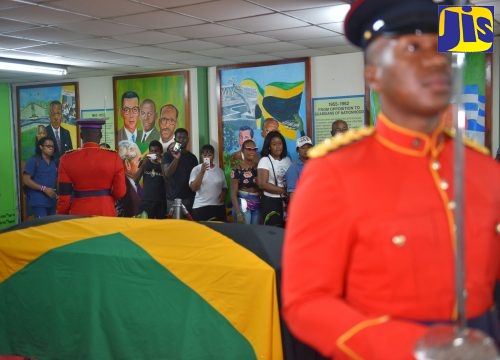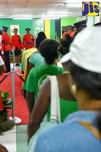 Members of the public file past the casket of former Prime Minister, the Most Hon. Edward Seaga at the Jamaica Labour Party’s headquarters in St. Andrew on Wednesday (June 5), where the body was lying-in-state.