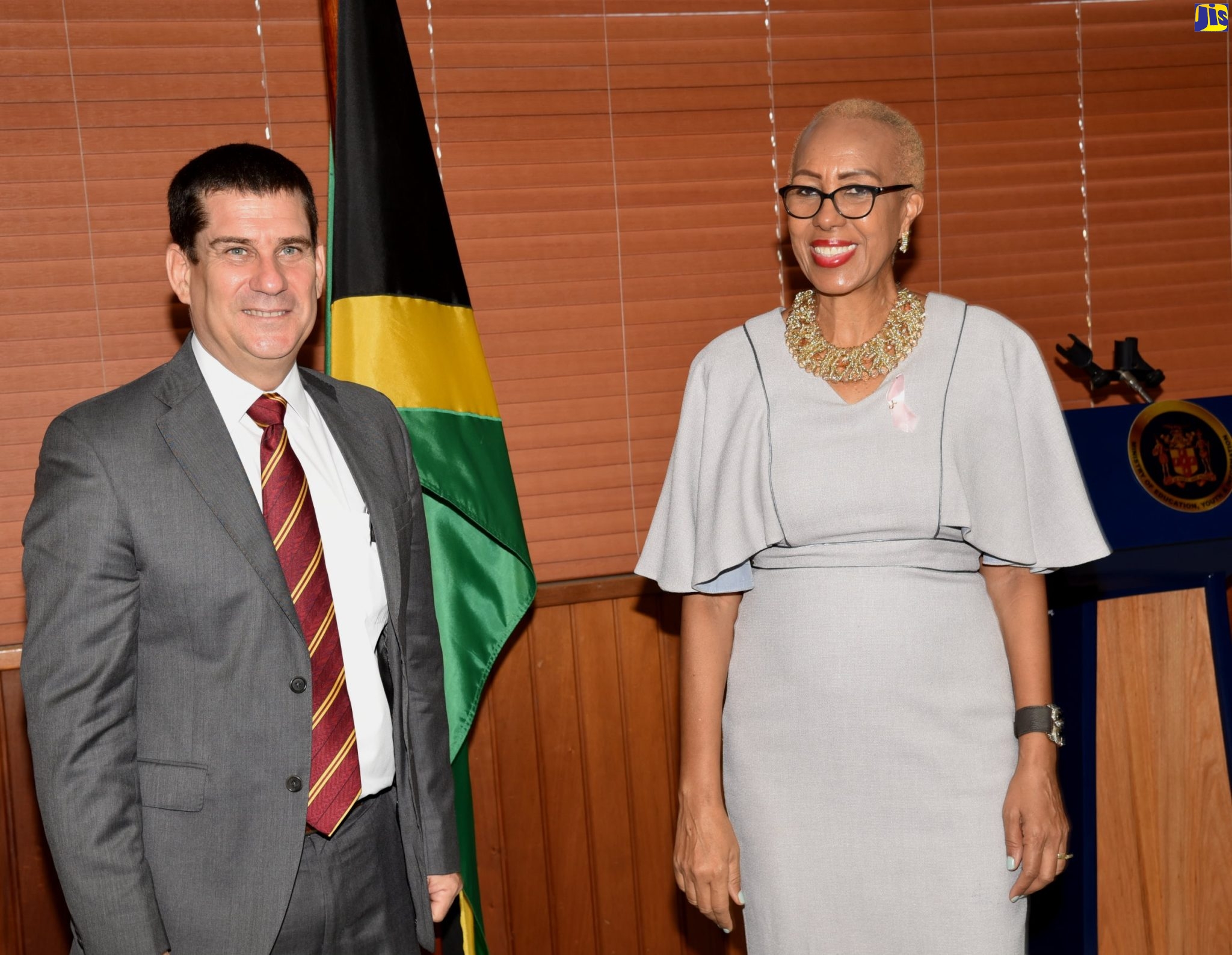 Minister of Education and Youth, Hon. Fayval Williams (right), welcomes Ambassador of the Republic of Cuba to Jamaica,