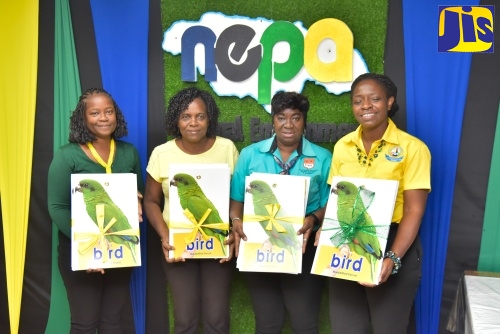 Chief Executive Officer of the National Environment and Planning Agency (NEPA), Peter Knight (left), and Acting Communications Manager at the Early Childhood Commission, Sophia Stewart (right), present environmental learning aids to head of the infant department at St. Francis Primary and Infant School, Natalie Davis. The handover ceremony was held at the NEPA’s Caledonia offices in Kingston on Friday (February 23).Acting Communications Manager at the Early Childhood Commission (ECC), Sophia Stewart (right), shares a photo opportunity with educators during the National Environment and Planning Agency’s (NEPA) ceremony for the hand over of environmental learning aids to three early childhood institutions. Receiving the resources (from left) are head of the infant department at St. Francis Primary and Infant School, Natalie Davis; educator at Merrion Basic School, Hermine Burkett Hooke; and educator at Beaming Brite Sparks Basic School, Veronica Fairclough. The ceremony was held at NEPA’s Caledonia offices in Kingston on Friday (February 23).