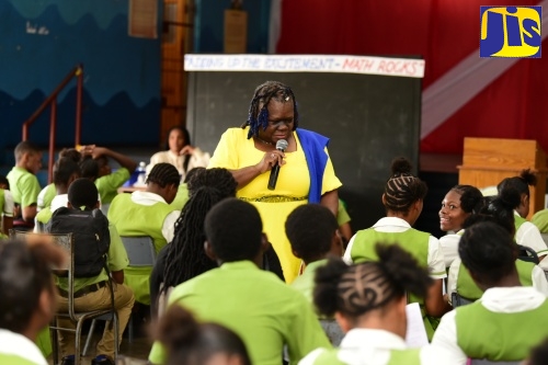 Senior Education Officer, Core Curriculum Unit, Ministry of Education and Youth, Dr. Lorna Thompson, addresses the Norman Manley High School Maths Conference held at the institution in Kingston on Friday (April 19). The event was part of activities for Maths Week from April 14 to 19 under the theme 'Adding Up the Excitement: Maths Rocks’