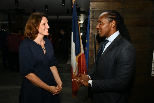 Minister of State in the Ministry of Foreign Affairs and Foreign Trade, Hon. Alando Terrelonge, engages in discussion with Ambassador of France to Jamaica, Her Excellency Marianne Ziss, at the Prestige Dinner in honour of the Jamaica Red Cross, held on Tuesday (December 9) at the Embassy of France in Kingston.
