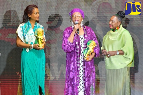 Minister of Culture, Gender, Entertainment and Sport, Hon. Olivia Grange (third right), with members of iconic reggae band Third World, during the Reggae Gold Awards presentation ceremony and 2024 Jamaica Music Museum Hall of Fame Inductions on Thursday (February 29) at the National Indoor Sports Centre in Kingston.Minister of Culture, Gender, Entertainment and Sport, Hon. Olivia Grange (right), listens as Jamaican singer, Marcia Griffiths (centre), delivers an acceptance speech after receiving an award on behalf the ‘I-Threes’ (back up vocalists for late reggae icon Bob Marley), on Thursday (February 29). The occasion was the Reggae Gold Awards presentation ceremony and 2024 Jamaica Music Museum Hall of Fame Inductions, at the National Indoor Sports Centre in Kingston. At left is singer, Deborah Cole.Minister of Culture, Gender, Entertainment and Sport, Hon. Olivia Grange (right), presents Jamaican reggae artiste Manley Augustus “Big Youth” Buchanan with a trophy during the Reggae Gold Awards presentation ceremony and 2024 Jamaica Music Museum Hall of Fame Inductions on Thursday (February 29) at the National Indoor Sports Centre in Kingston.Minister of Culture, Gender, Entertainment and Sport, Hon. Olivia Grange (right), is embraced by Jamaican dancehall artiste Rodney “Bounty Killer” Price, after presenting him with a trophy during the Reggae Gold Awards presentation ceremony and 2024 Jamaica Music Museum Hall of Fame Inductions on Thursday (February 29) at the National Indoor Sports Centre in Kingston.