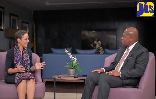 Minister of Foreign Affairs and Foreign Trade, Senator the Hon. Kamina Johnson Smith (left) enjoys a lively conversation with Minister of Foreign Affairs of the Republic of Ghana, Hon. Samuel Okudzeto Ablakwa, following his arrival at the Norman Manley International Airport in Kingston today (January 24).