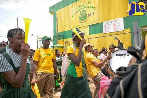 Students of the St. Catherine-based St. Jago High School blew horns and beat drums during a march on Monday (April 8) to celebrate the school’s victory in the 2024 Schools’ Challenge Quiz competition. St. Jago defeated Calabar High School with a score of 37-33 in the competition finals held on April 5 to claim the coveted title for the third straight year.Members of St. Jago’s victorious Schools’ Challenge Quiz team proudly show off their championship trophy during a celebratory event on Monday (April 8) at the school’s Monk Street address in Spanish Town, St. Catherine. Holding the trophy is Jermaine Miller (right), while Nathaniel Baker is at left. St. Jago defeated Calabar High School with a score of 37-33 in the competition finals held on April 5 to claim the coveted title for the third straight year.