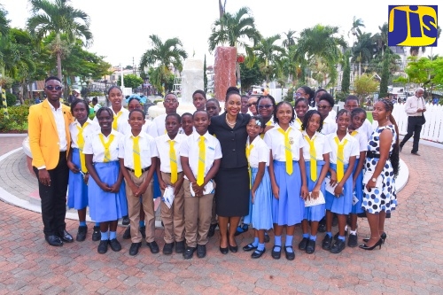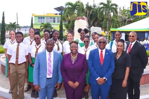 Members of the Jamaica Combined Cadet Force lead a parade during Tuesday’s (November 21) launch of Values and Attitudes Awareness Day at Cecil Charlton Park in Mandeville, Manchester.Minister of State in the Ministry of Education and Youth, Hon. Marsha Smith (centre), is flanked by students and educators of Guy’s Hill High School. The occasion was Tuesday’s (November 21) launch of Values and Attitudes Awareness Day at Cecil Charlton Park in Mandeville, Manchester.Minister of State in the Ministry of Education and Youth, Hon. Marsha Smith (front row, second right), shares a photo opportunity with officials and students of Manchester High School during Tuesday’s (November 21) launch of Values and Attitudes Awareness Day. The event was held at Cecil Charlton Park in Mandeville, Manchester. From left are Mayor of Mandeville, Councillor Donovan Mitchell; Director of Public Prosecutions, Paula Llewellyn; Custos Rotulorum for Manchester Custos, Lt. Col. the Hon. Garfield S. Green; and Member of Parliament for Manchester North Western, Mikael Phillips.