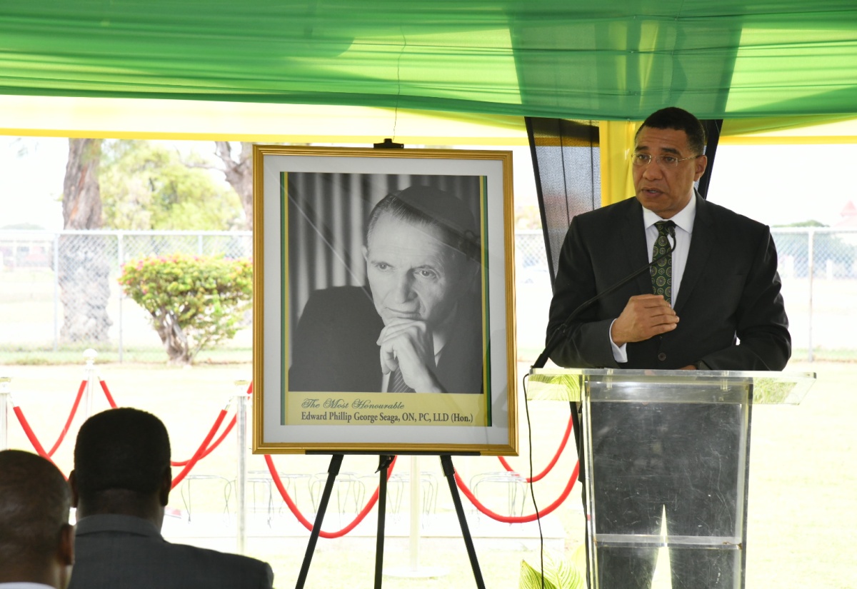 Prime Minister, the Most Hon. Andrew Holness, delivers the keynote address during a floral tribute in honour of late former Prime Minister, the Most Hon. Edward Seaga, at National Heroes Park in Kingston on Tuesday (May 28). The event marked Mr. Seaga’s 94th birthday and the fifth anniversary of his passing.