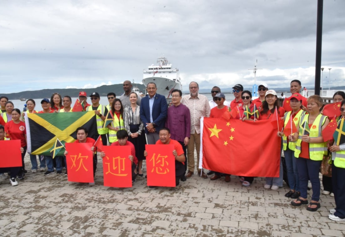 Minister of Health and Wellness, Dr. the Hon. Christopher Tufton (centre), shares a photo with stakeholders who came out to welcome China’s Silk Road Ark hospital ship as it arrived in Port Royal on Monday (December 8). To the Minister’s right are Minister of Foreign Affairs and Foreign Trade, Senator the Hon. Kamina Johnson Smith and Opposition Spokesman on Health and Wellness, Dr. Alfred Dawes; and to his left are China’s Ambassador to Jamaica, His Excellency Jinfeng Wang; Opposition Leader, Mark Golding and Mayor of Kingston, Andrew Swaby.