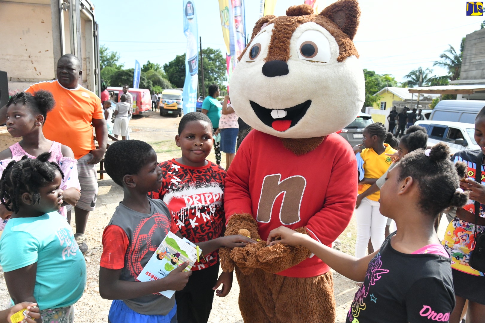 A mascot interacts with children during the 16th staging of the Lauriston/Thompson Pen Community 4-H Club’s Stew Festival in Spanish Town, St. Catherine, on Saturday (November 5).