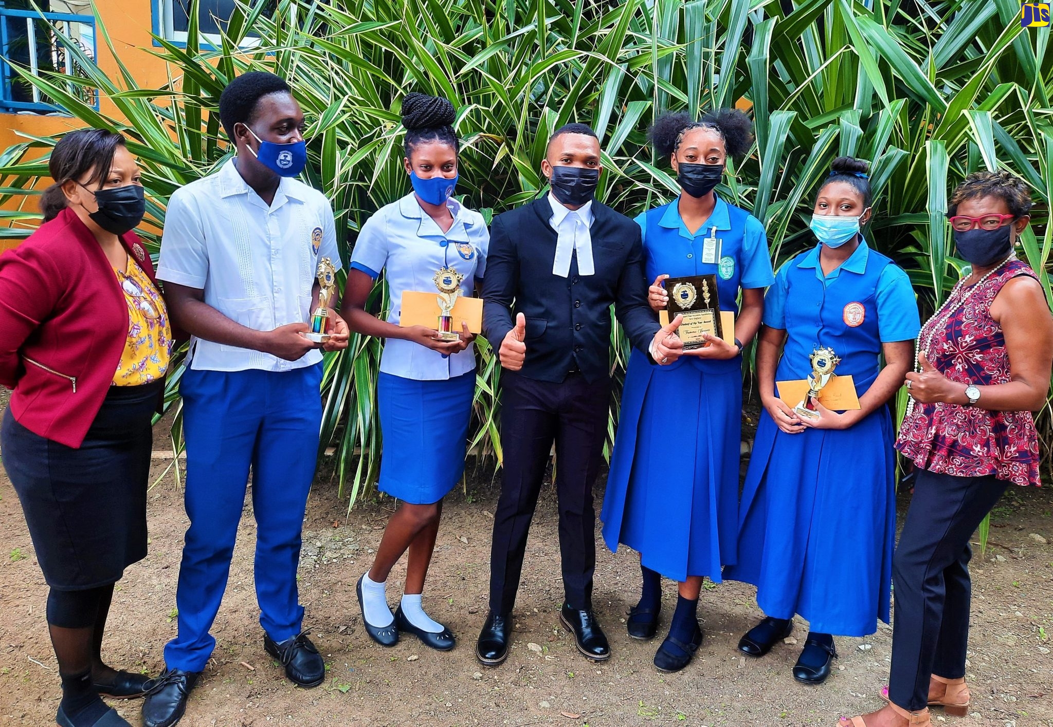 Minister of State, Ministry of National Security, Hon. Zavia Mayne (left) presents Zaria Brown (centre)