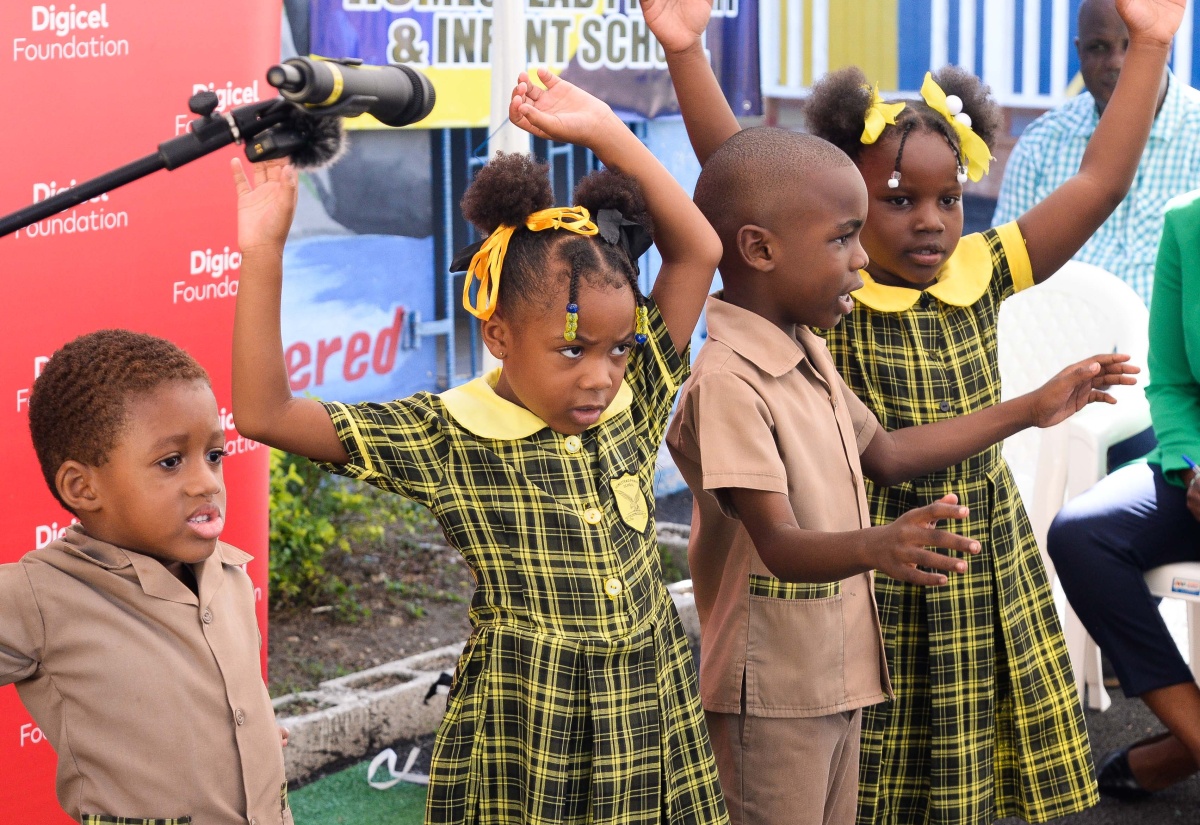 Students at the St. Catherine-based Homestead Primary and Infant School perform during the recent handover of a smart room at the institution, sponsored by the Digicel Foundation.