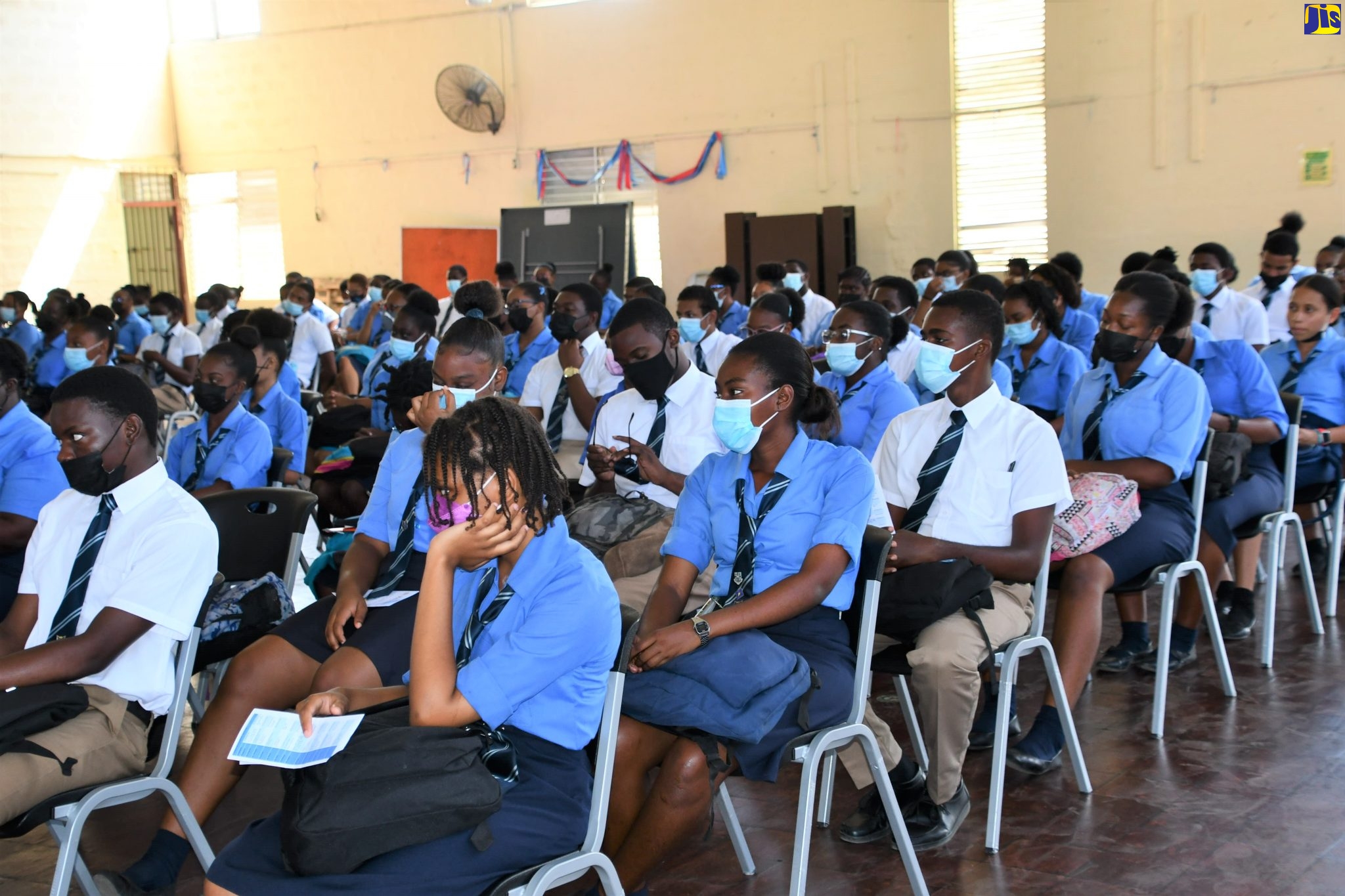 Students of the Manning’s School in Westmoreland in attendance at the Ministry of Justice’s Alternative Dispute Resolution (ADR) Services Public Education Campaign session, which was held at school on Friday (April 1).