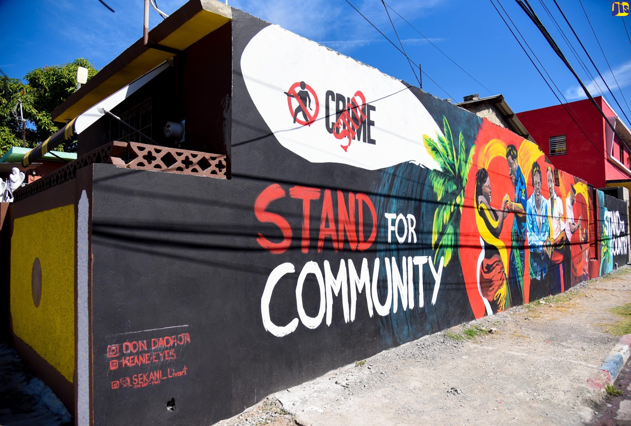 The ‘Stand Up For Our Country’ mural, which was unveiled in Hannah Town, Kingston, recently. The augmented reality (AR) artwork, done by Bonito Thompson, is part of a Crime Stop project, aimed at urging Jamaicans to stand together against crime.