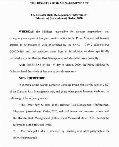 The signed Enforcement Measure, means that Jamaicans employed on contract in overseas programmes between the Government and a private entity, those privately employed, seamen, airline crew and Jamaican citizens who had booked a ticket before the 20th of March, will now have until the 24th March to return to the island.