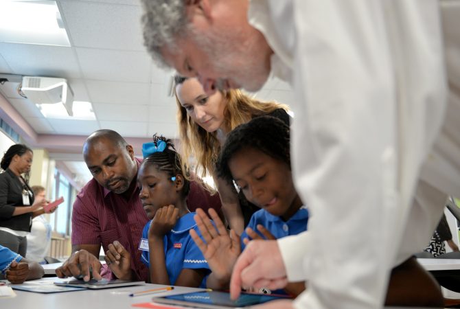 “We want to expose you to other ways in which you can use the technology. Many of you use the technology for the Grade Six Achievement Test (GSAT) preparations, but there are other things that you can do with the tablet…so when you leave here you can experiment on your own,” he said.