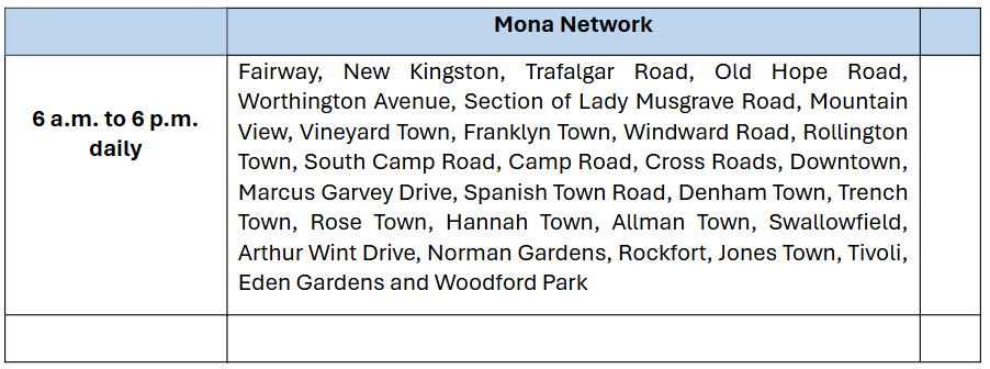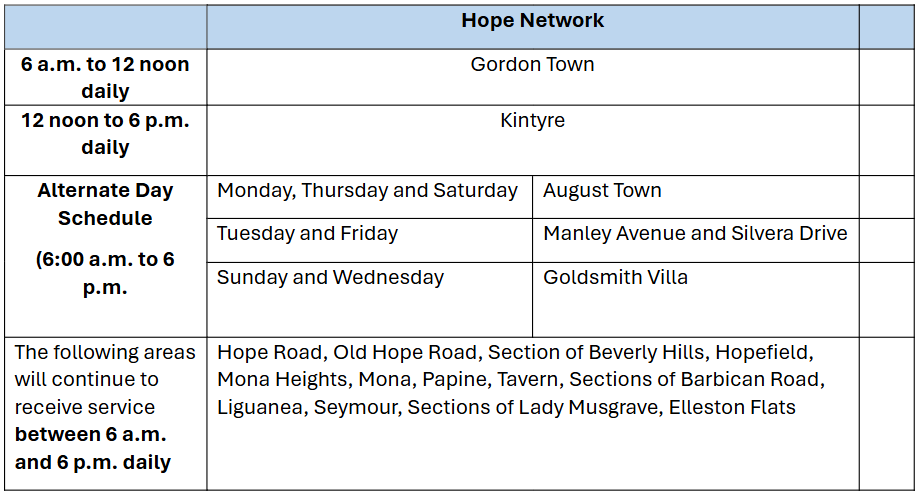 The National Water Commission (NWC) wishes to advise the public that water supply regulations will come into effect for sections of the Kingston and St. Andrew (KSA), starting on Monday, July 21, 2025 for the Mona and Hope networks, and Wednesday, July 23 for the Constant Spring network.